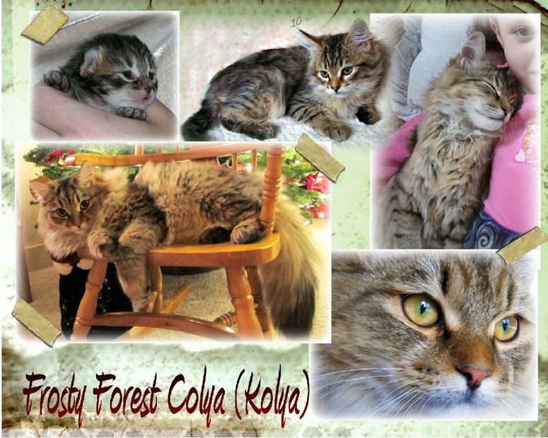 Frankie's owner, Holly, wrote about him: "I will admit, it took some convincing to get my husband, a "dog guy," to agree to a pure-bred cat. I used the Siberian's hypoallergenic nature as a bargaining chip and recited to him the very cool personality traits of the Siberian—I emphasized their "dog-like" traits. We have had Frankie for about eight months now, and we are all in love. Yes, even the hub. I have caught him snuggling with Frankie on numerous occasions! I have had no less than 15 cats in my life—Frankie is, hands down, the coolest cat I've had (and I've had some fantastic cats). He is exactly as advertised. He is a very social cat, always in the middle of the action. He doesn't want to let me out of his sight for fear me may miss something. He's a lap kitty—in fact, he just gave me nudge as I type to let me know he's coming up. He loves the kids, though smartly he approaches my sometimes wild son with a bit of caution! He is the perfect amount of affectionate—not needy, but just so happy to be loved. And my favorite part, he plays fetch! Many people say their Siberians love this game, but I didn't believe until I saw it. We are so happy to have found Frankie and are thrilled with the quality of breeder we found in Frosty Forest (who came highly recommended from another breeder). Thank you for our boy—he brings us entertainment and joy every day!"